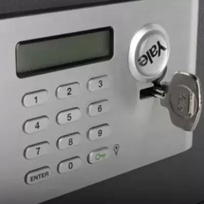 Dvoslojni sef sa elektronskom i mehaničkom bravom. Može da se ankeriše za pod ili zid. Spoljne dimenzije: 282x352x257mm.