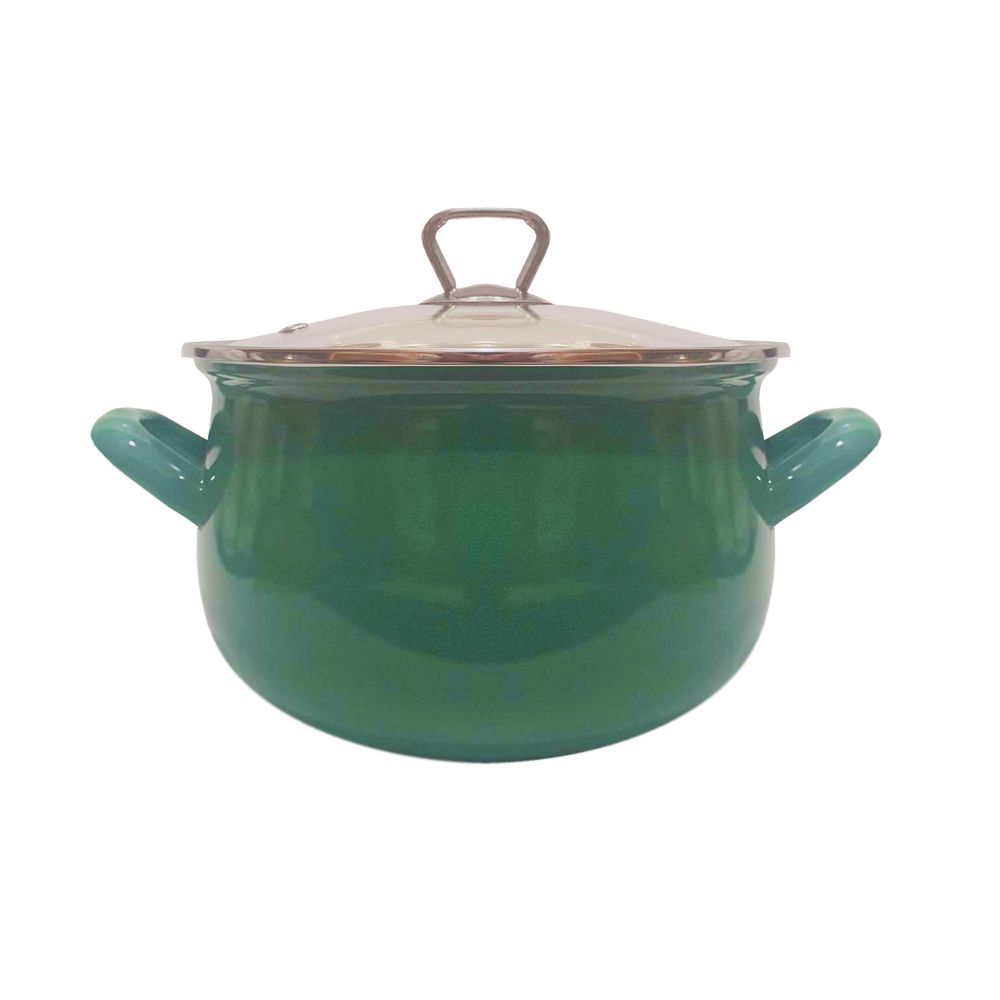 Texell emajlirana šerpa modernog trbušastog oblika, zapremine 2.1L. Poseduje stakleni poklopac sa drškom od nerđajućeg čelika.