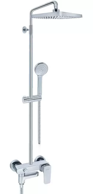 Baterija za tuš kadu sa usponskim tušem čija je glava kvadratnog oblika, ručnim tušem i izlivom za kadu.