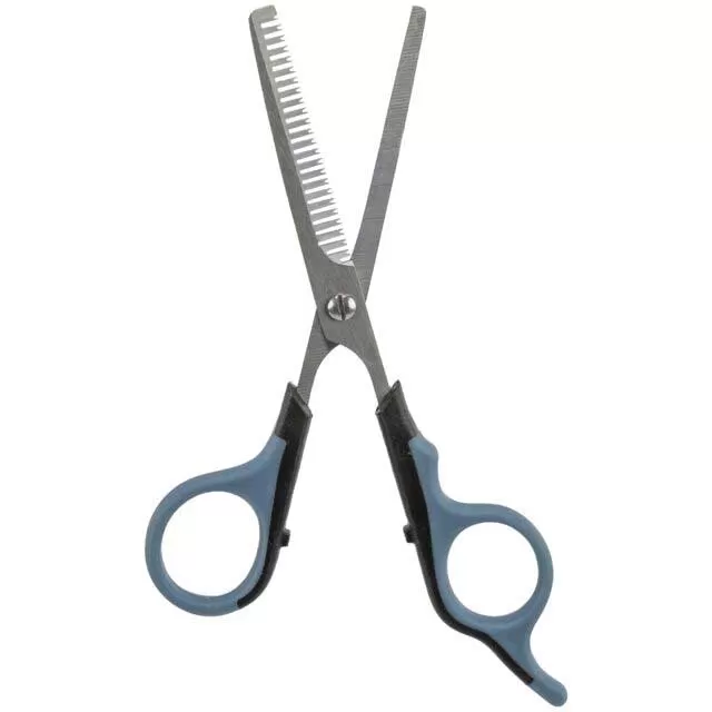 Makaze nazubljenog sečiva, od nerđajućeg čelika, namenjene su trimovanju (stanjivanju) krzna pasa, mačaka i drugih ljubimaca. Odgovaraju svim tipovima krzna. Dimenzija: 16cm.