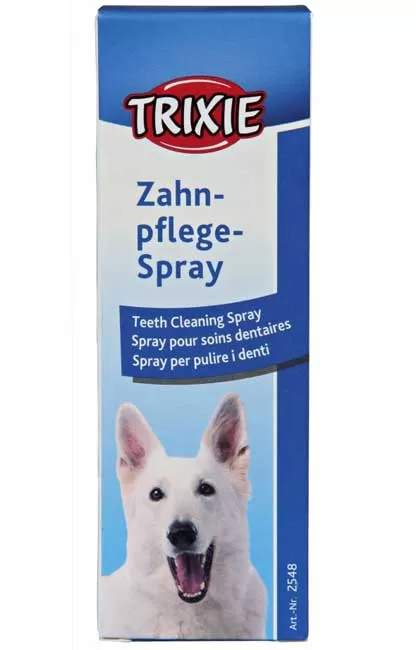 Trixie sprej za čišćenje zuba psa. Potrebno je naprskati ga na zube psa dva puta sedmično.