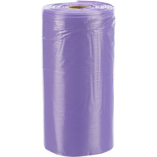 Pakovanje od 4 rolne, svaka po 20 kesica za skupljanje izmeta pasa. Kese su sa mirisom lavande i staju u svaku namensku torbicu/dispenzer za kese. Plastične su.