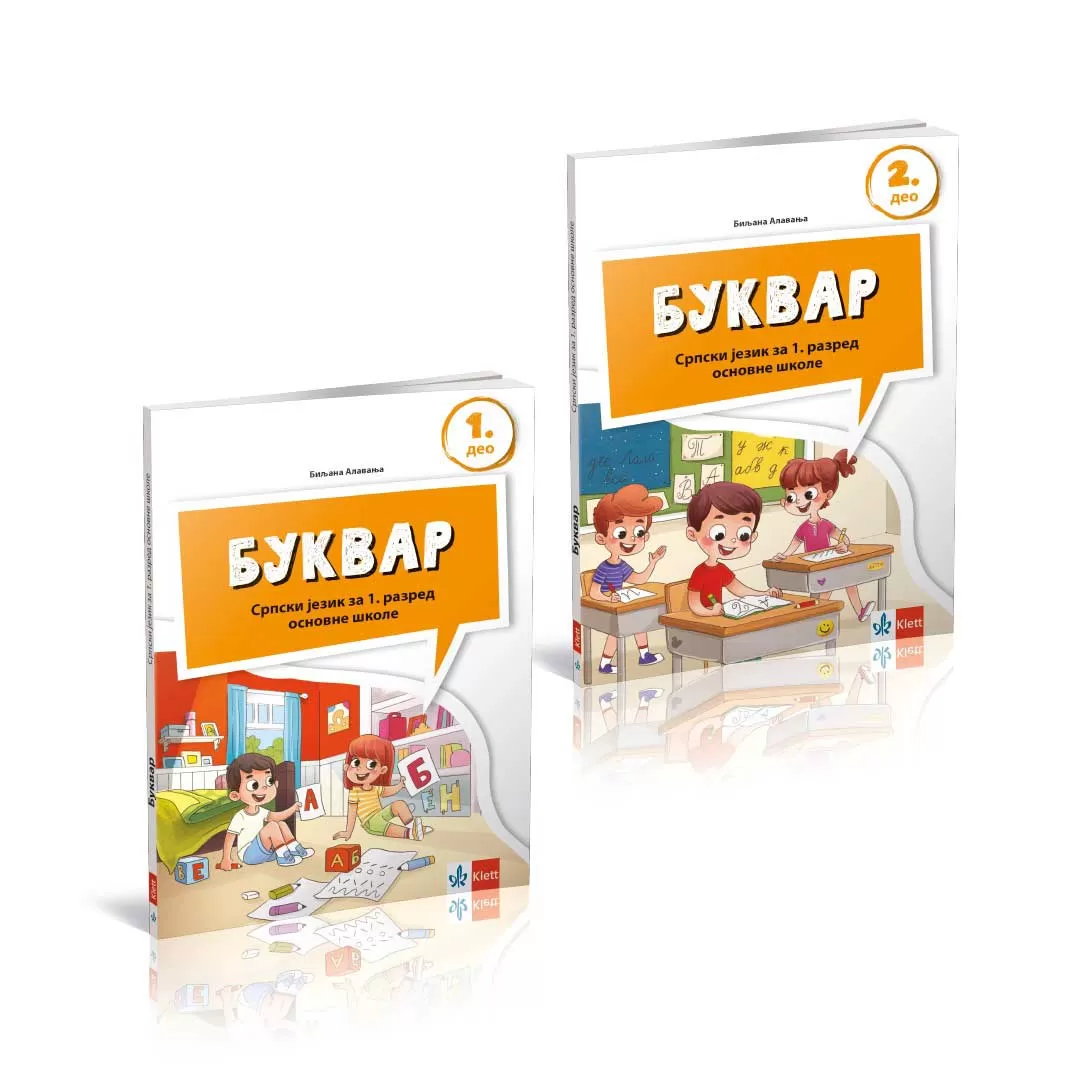 Bukvar sa slovaricom za prvi razred osnovne škole, odobren rešenjem Ministarstva prosvete. Autor: Biljana Alavanja. Izdavač: Klett.