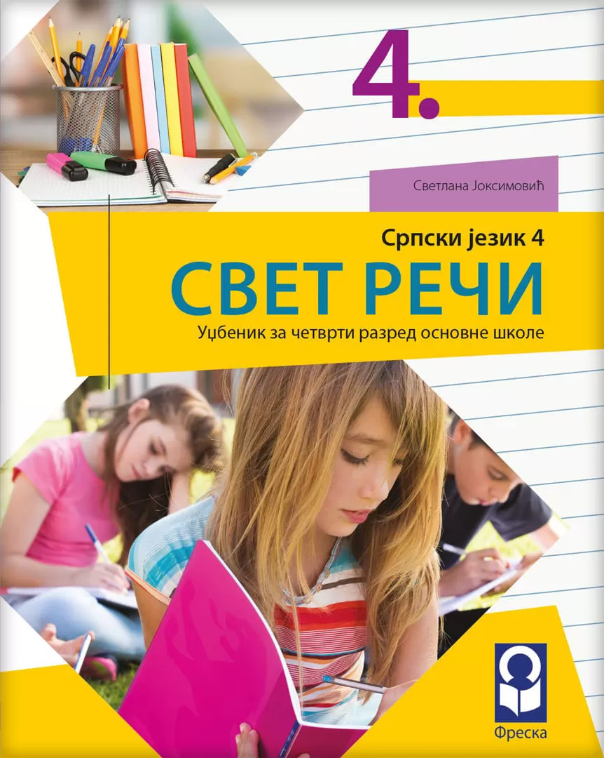 Svet reči je gramatika srpskog jezika za četvrti razred osnovne škole, izdavač Freska. Autor je Svetlana Joksimović.