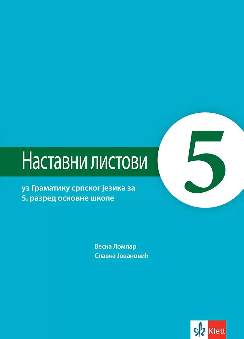 Nastavni listovi uz gramatiku srpskog jezika za peti razred osnovne škole, odobreni od strane Ministarstva prosvete. Autorke: Vesna Lompar, Slavka Jovanović. Izdavač: Klett.