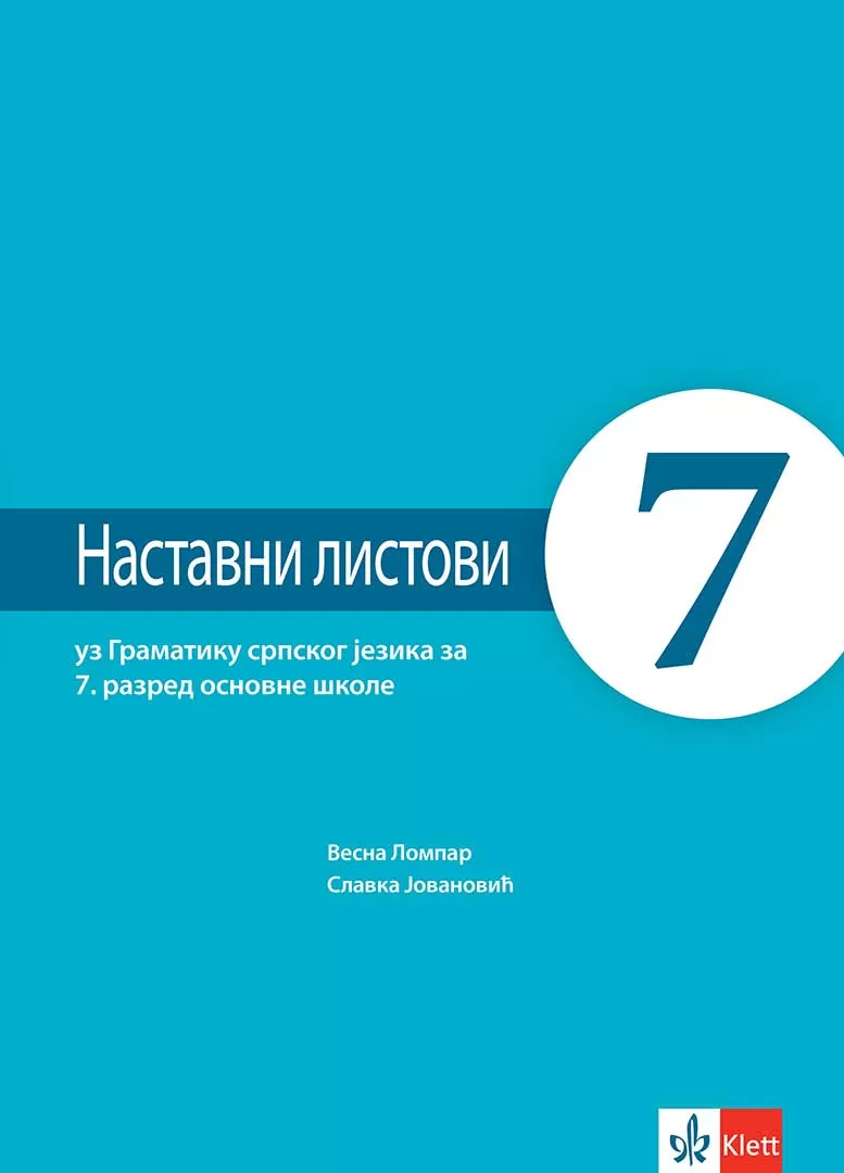 Nastavni listovi uz gramatiku srpskog jezika za sedmi razred osnovne škole, odobreni od strane Ministarstva prosvete. Autorke: Vesna Lompar, Slavka Jovanović. Izdavač: Klett.