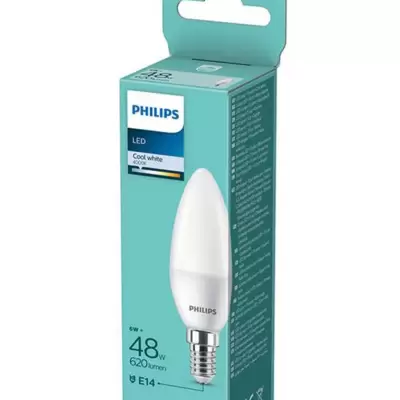 Philips LED sijalica snaga: 6W (48W). Sijalično grlo: E14. Jačina svetlosti 620Lm. Boja svetlosti - 4000K.