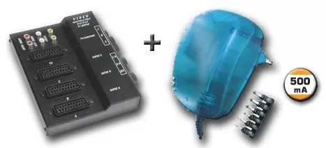 Priključci: 2,5 mm, 3,5 mm; 1,35 x 3,5 mm; 1,5 x 5,5 mm; 2,1 x 5,0 mm; 2,5 x 5,5 mm