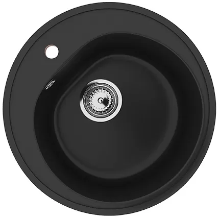 Okrugla, ultra crna, granitna, nasadna sudopera prečnika 500 mm, sa otvorom za slavinu, Ulgran U101-344.
