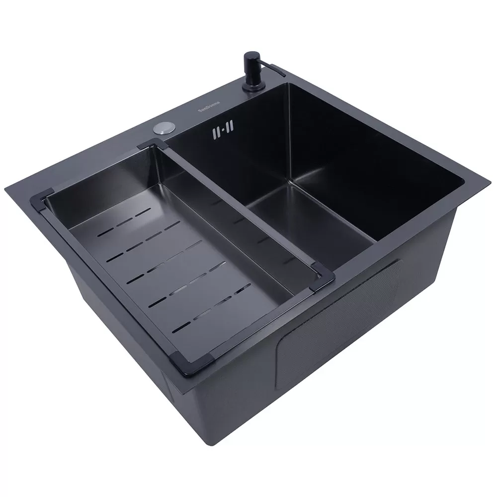 SanDonna HD5550 limena četvrtasta sudopera u crnoj boji sa sifonom, dozerom i držačem