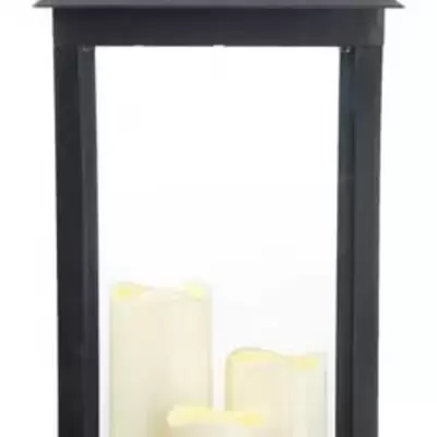Fenjer atraktivnog dizajna sa LED svećama koji će ukrasiti vašu sobu ili dvorište. Visina fenjera je 71cm. Radi na baterije.