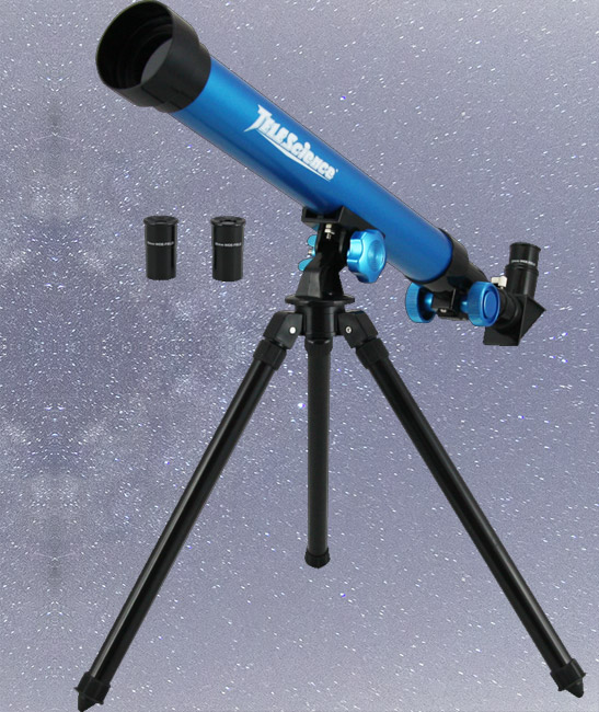 Refraktorski teleskop. Promer objektiva: 60mm, Žižna daljina - dužina cevi: 700mm. Aluminijumski stativ maksimalne visine 125cm.Uveličanje 35x-525x