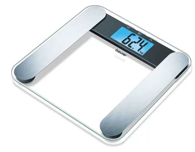Prikazuje telesnu težinu, masnoće, vodu u telu i mišiće. Automatski se gasi.