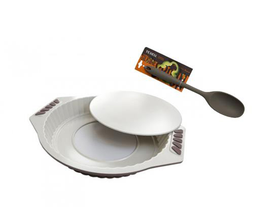 Texell set pekač keramički okrugli sa skidajućim dnom i silikonska varjača siva