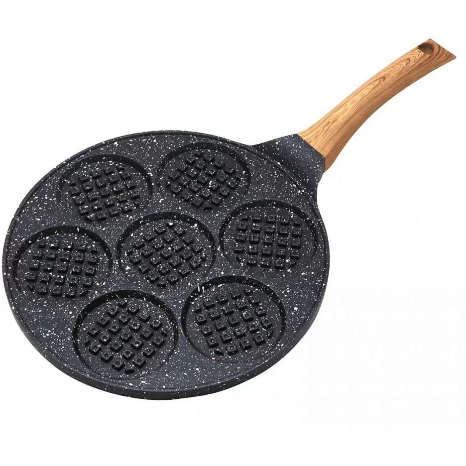 Tiganj za mini palačinke je izrađen od aluminijuma. Istovremeno se može peći 7 palačinki. Obezbeđuje odličnu distribuciju toplote i zadržavanje toplote.