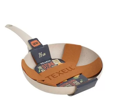 Tiganj sa specijalnim petoslojnim Stone line premazom. Debljina tela 3,00mm . Bakelitna drška sa silikonskim premazom. Bez PFOA. Prečnik: 26CM
