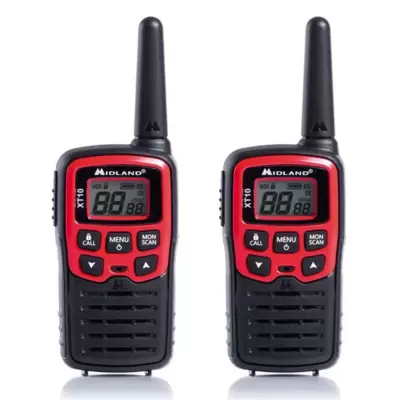 Toki-voki set koji radi na slobodnoj frekvenciji, nije potrebna dozvola (446 MHz) sa 8 kanala. Sa stonim punjačem i baterijama.
