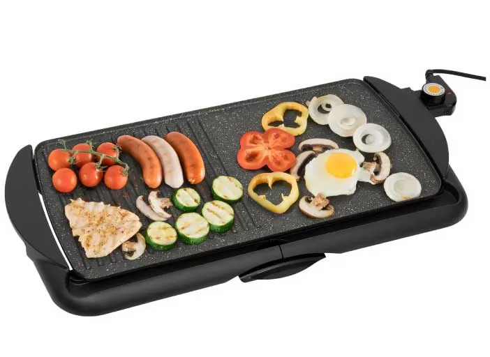 Električni roštilj je idealan za upotrebu tokom cele godine jer se može koristiti i u zatvorenim prostorijama. Površina za prečenje poseduje ravni i rebrasti deo. Temperatura se može podešavati.