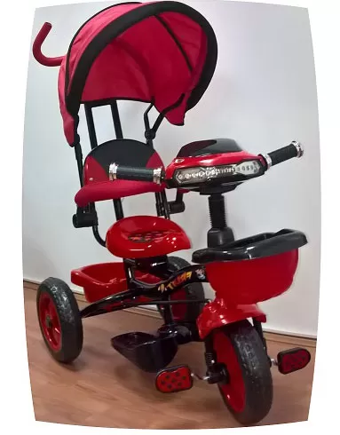 Triciklom može da upravlja i odrasla osoba uz pomoć cevi sa upravljačem koja se nalazi sa zadnje strane