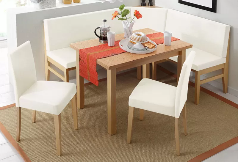 Ugaona klupa ima jednu dužu stranu 174cm i jednu kraću 136cm. Duža i kraća strana mogu biti sa bilo koje strane leve ili desne.