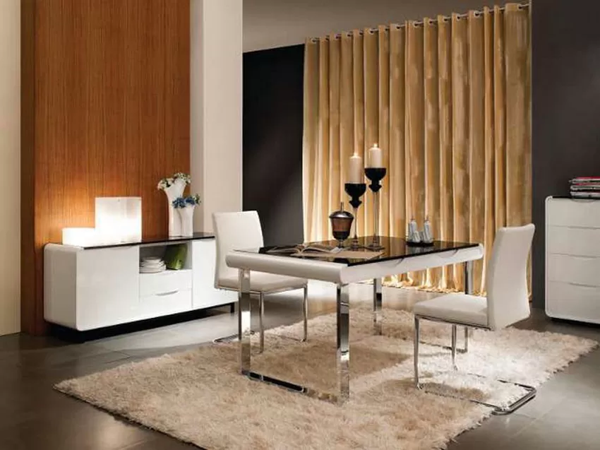 Ploča stola: MDF PU lak beli visoki sjaj sa crnim staklom