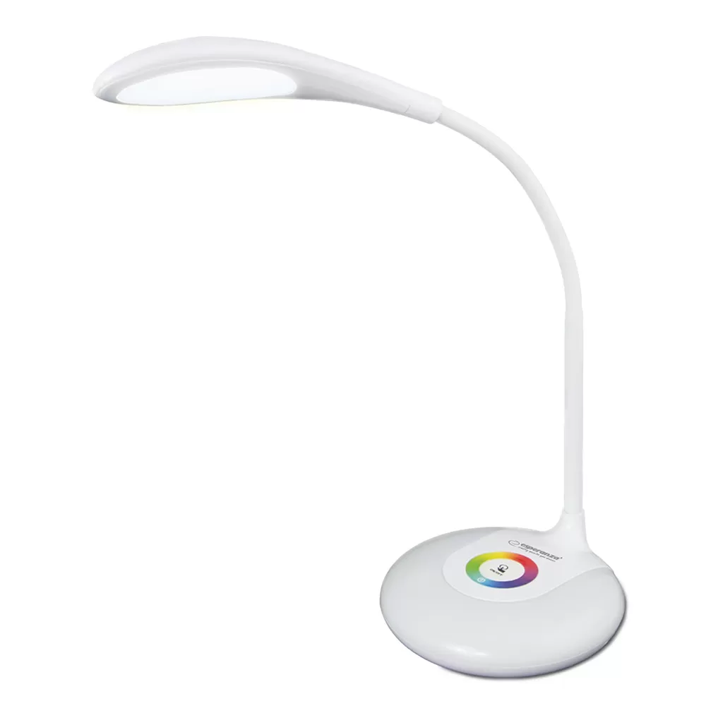 Esperanza ELD102 je LED stona lampa sa belim i RGB pozadinskim svetlom (256 boja). Ima tri nivoa jačine belog svetla. Upravljanje je na dodir. Napaja se putem USB kabla ili 4 AAA baterije. Ima fleksibilan vrat za usmeravanje svetla.