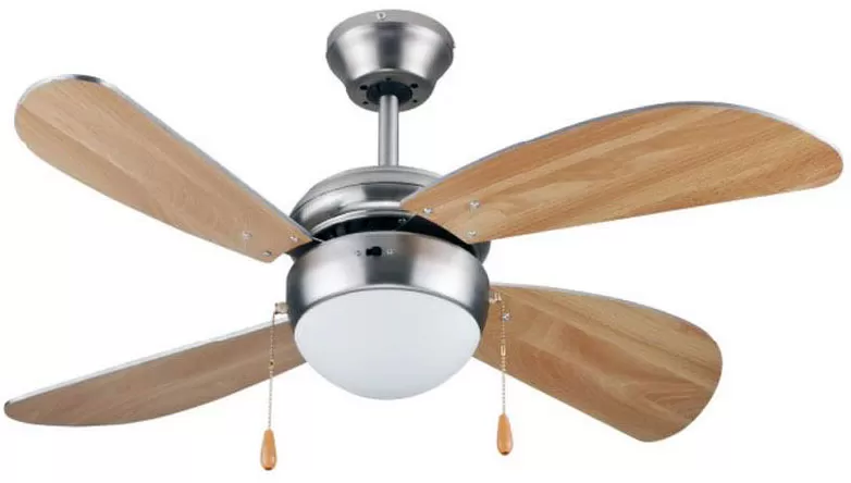 Luster koji rashlađuje! Elegantan i praktičan plafonski ventilator sa četiri drvene elise i standardnim sijaličnim grlom, E27.