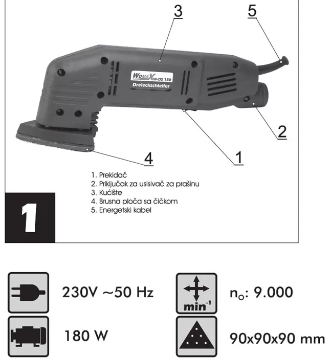 Pažnja: Namenjena je samo za suvo brušenje. Ne vršite pritisak na uređaj prilikom rada.