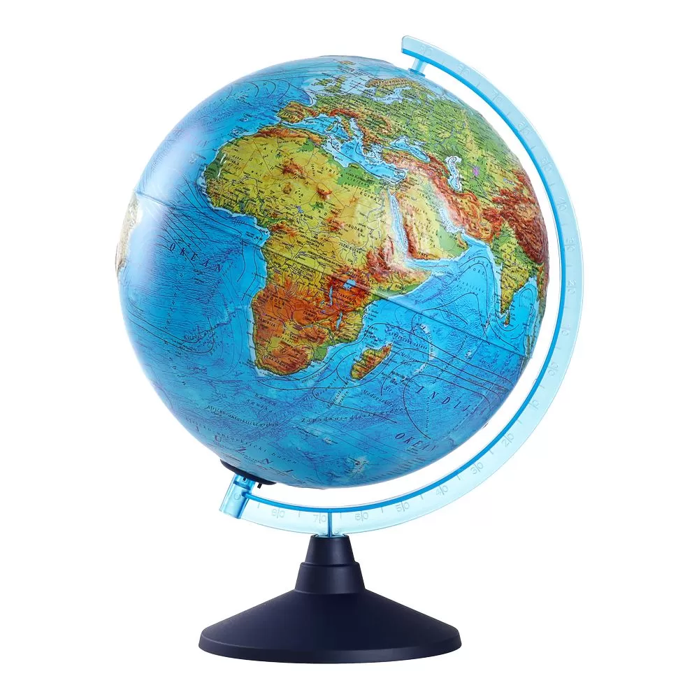 Kada je osvetljenje isključeno na globusu je prikazana fizička mapa sveta