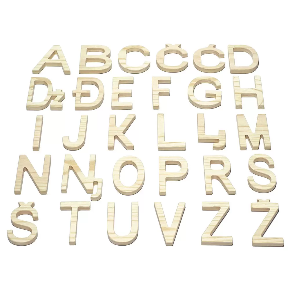 Komplet se sastoji od 30 latiničnih slova abecede bez oštrih ivica i prijatnih na dodir