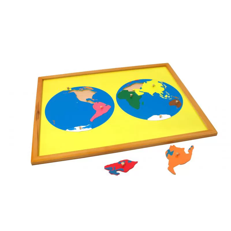 Puzzla pomaže detetu da shvati pojam planete Zemlje na kojoj živi i sveta koji ga okružuje. Elementi slagalice su prikazani u vidu kontinenata različitih boja.