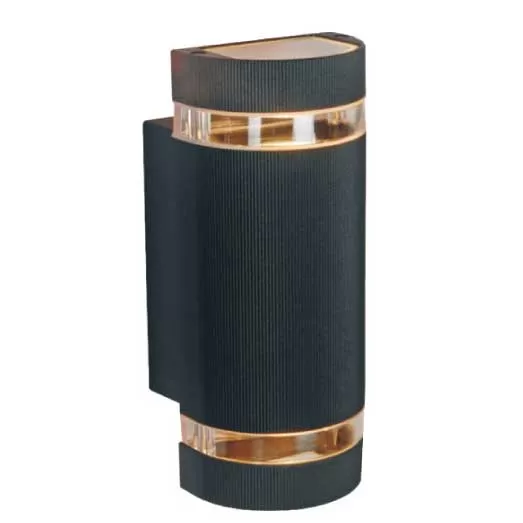 Elegantna zidna lampa idealna za osvetljavanje kako unutrašnjeg tako i spoljašnjeg prostor. Ima dva sijalična grla tipa GU10, a svetlosni snop se prostire gore i dole.