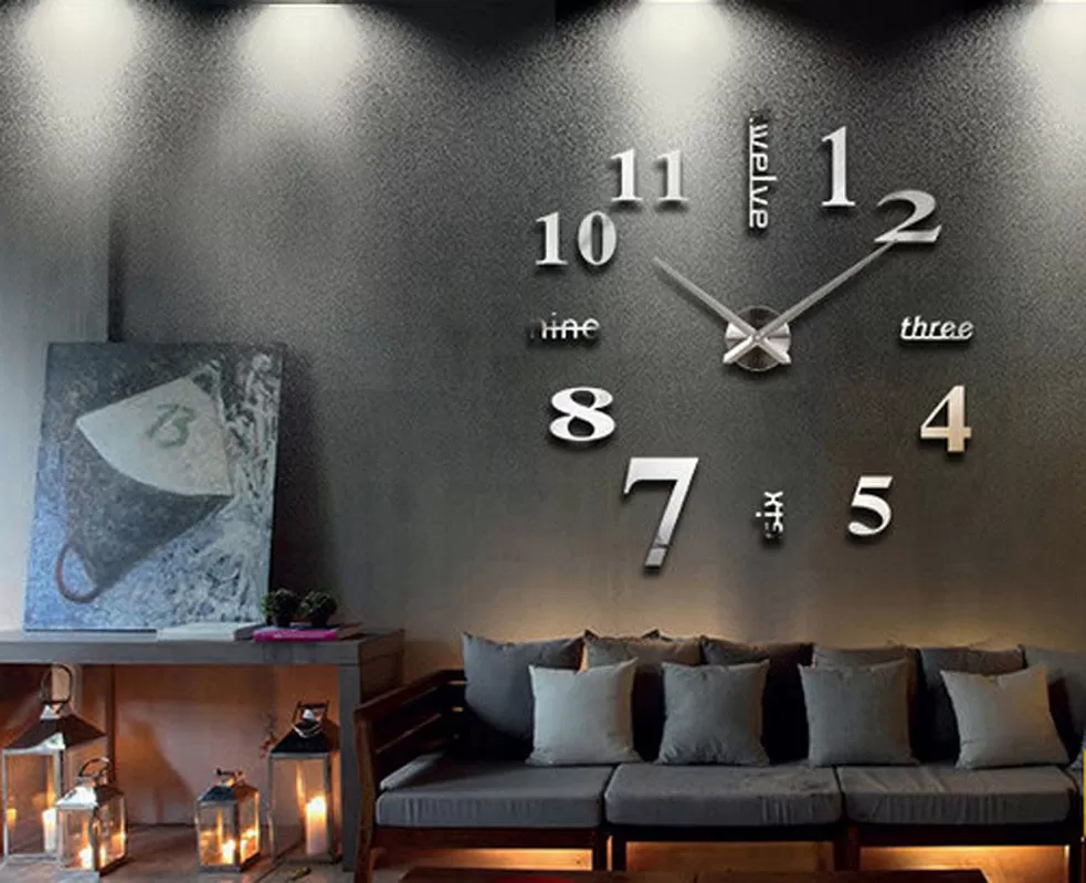 Samolepljivi, 3D zidni sat. Dimenzije postavljenog sata su 100 x 100 cm, a dužina velike kazaljke 35 cm. Fenomenalna dekoracija za zid u dnevnoj, spavaćoj, radnoj sobi ili hotelskom holu...