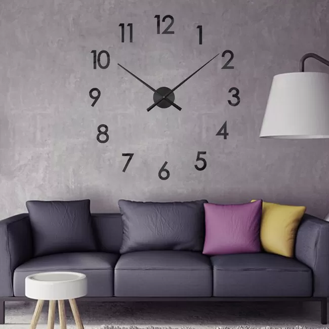 Samolepljivi, 3D zidni sat. Dimenzije postavljenog sata su 100 x 100 cm, a dužina velike kazaljke 35 cm. Fenomenalna dekoracija za zid u dnevnoj, spavaćoj, radnoj sobi ili hotelskom holu...