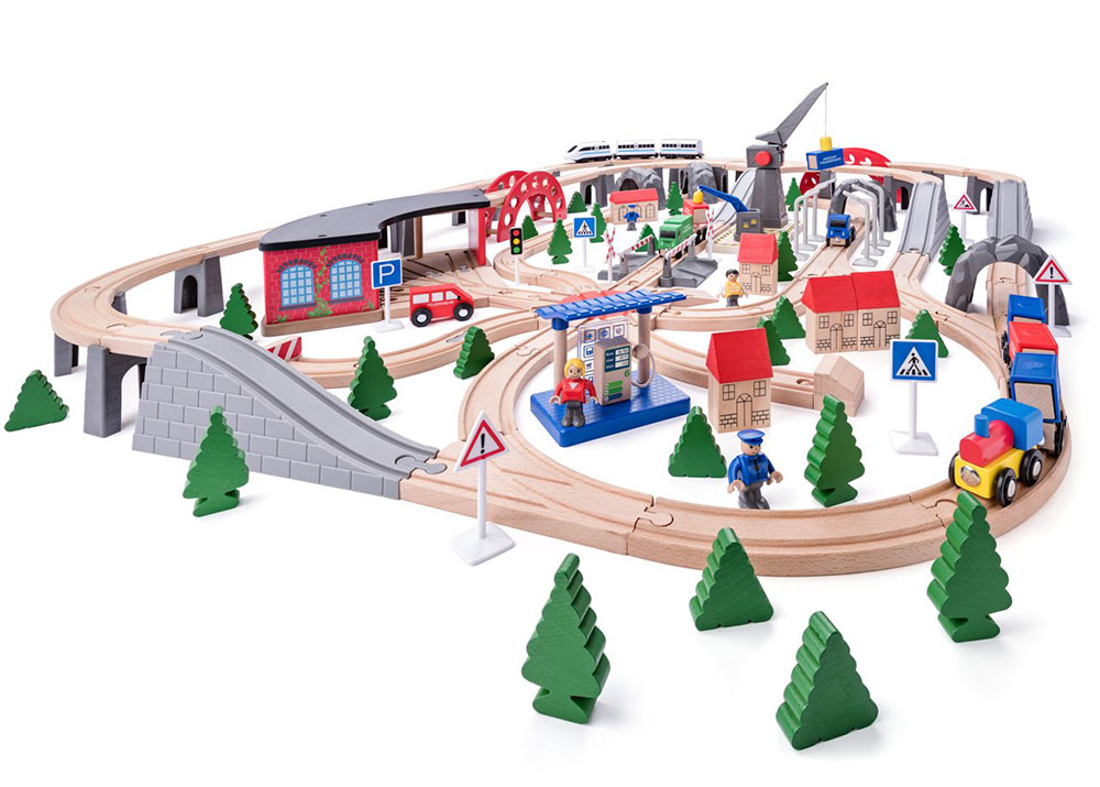 WOODY Velika industrijska pruga sa vozovima i dodacima