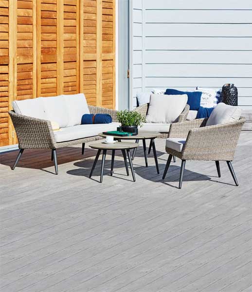 Trosed Dimenzije: Širina: 182 cm Dužina: 75 cm Visina: 47 cm Osobe: 3 Obrada: sa premazom u prahu Boja: natur uključuje: Luksuzni jastuci sa dugotrajnom prošivenom poliesterskom navlakom
