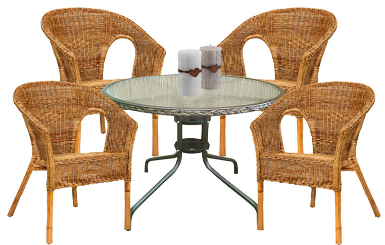 Baštenska Garnitura Radcliffe - 4 Stolice - Prirodni Ratan i Sto Sa Staklom