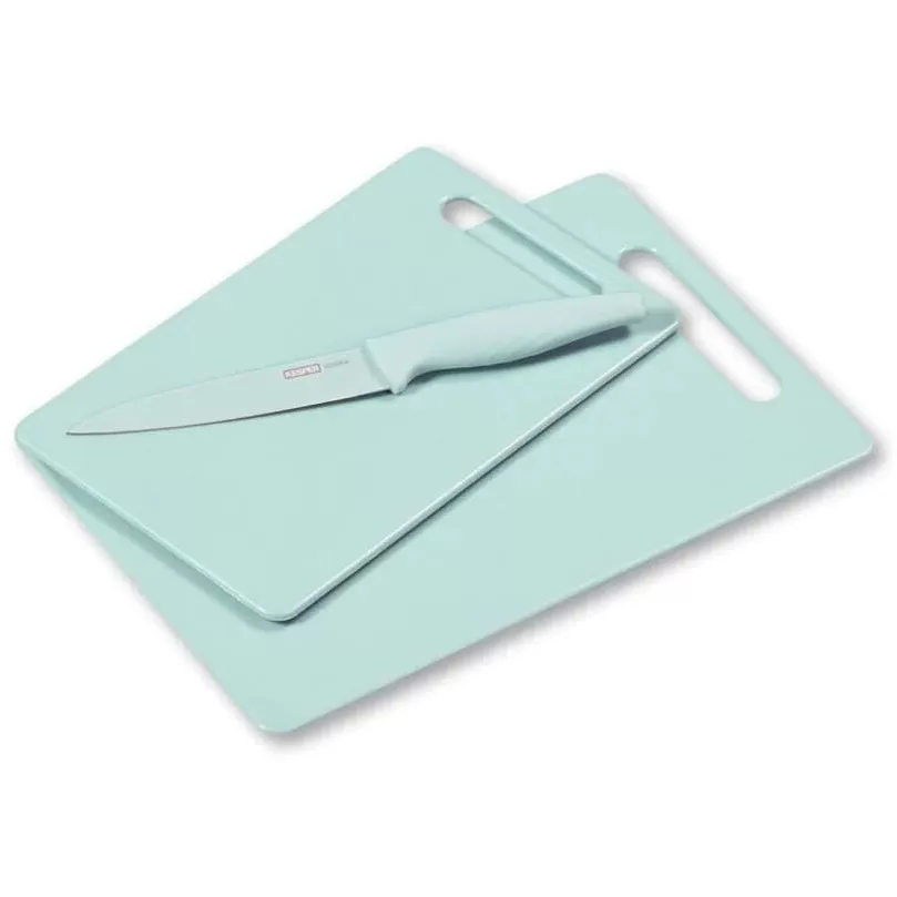 Kesper kuhinjski set za pripremu hrane sadrži dve daske za sečenje različitih veličina i nož od 12.5cm. Boja seta: mint.