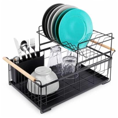 Stalak koji olakšava sušenje ručno opranog posuđa i štiti kuhinjsku ploču. Izrađen je od metala, dok je podloga od kvalitetne plastike. Poseduje umetak za escajg i drvene ručke.