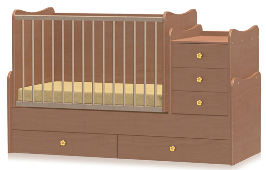 Krevetac koji se sastoji iz 3 dela: krevetac - kolevka, komoda i postolje sa fiokama