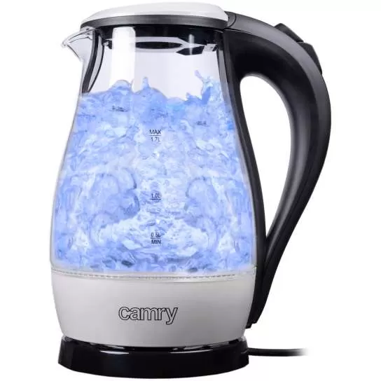 Veliki električni ketler snage 2200 W. Ketler je opremljen jarkim indikatorom nivoa vode i automatskim isključivanjem, tako da će se isključiti nakon što voda proključa.