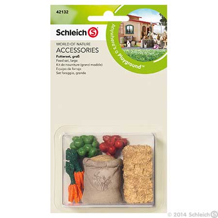 Hrana i oprema su srazmerni Schleich figurama ljudi i konja