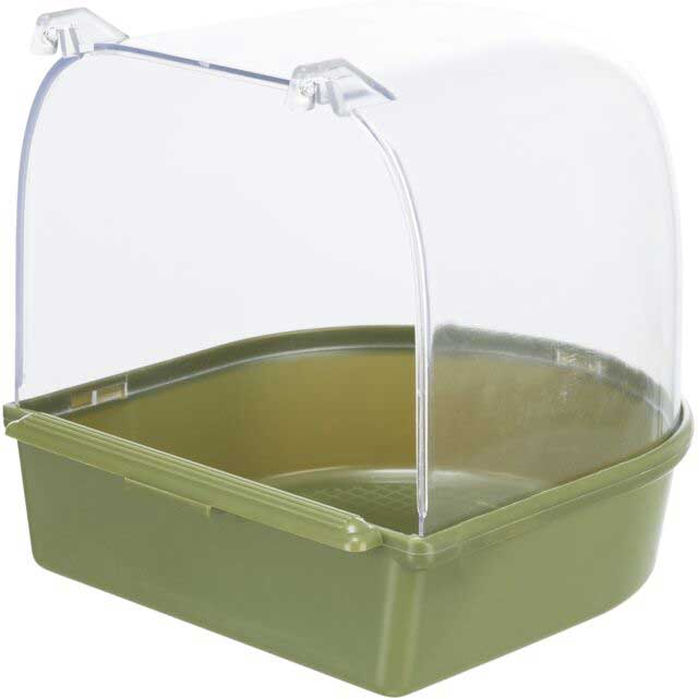 Kupatilo koje je namenjeno da se vaš pernati ljubimac slatko kupa, sa što manje prskanja vode i da to ne radi u pojilici. Kači se spolja na otvorena vratanca kaveza.