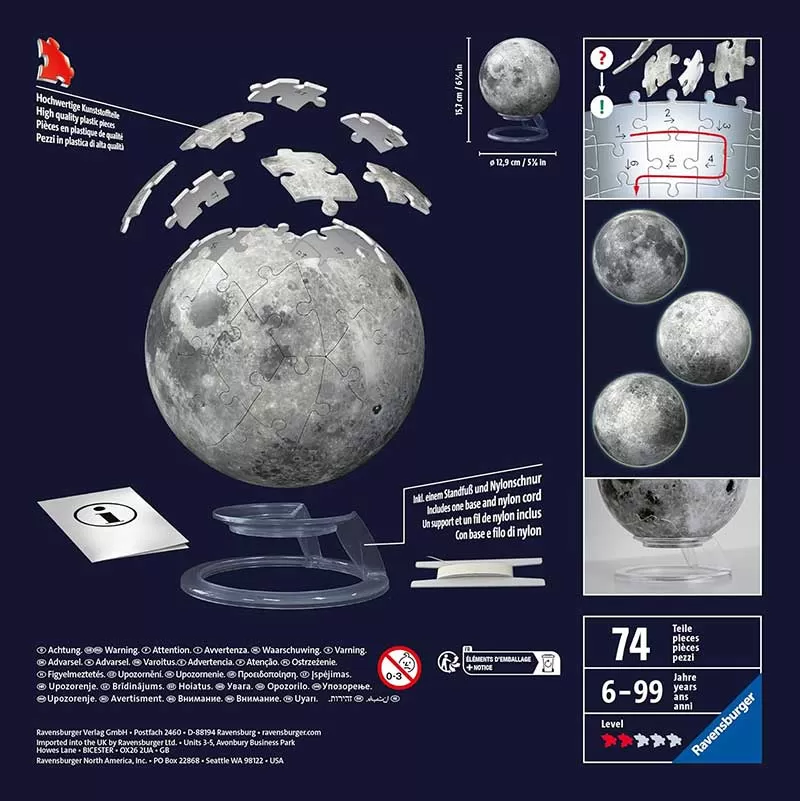 3D Puzzle Mesec koji svetli u mraku 72 dela Ravensburger 11586 - Slika