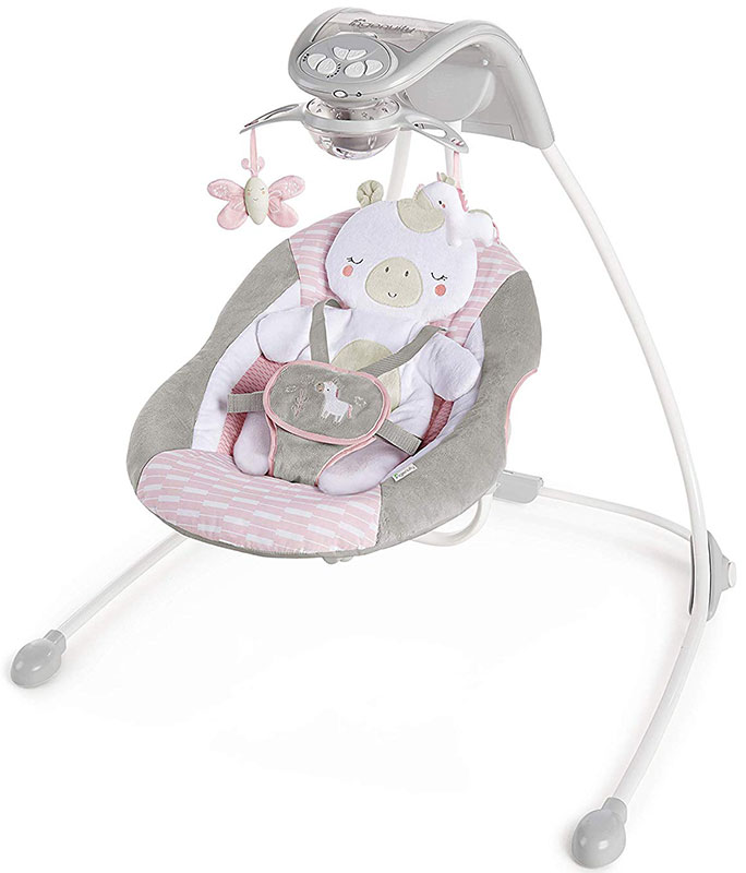 Ingenuity Pametna ljuljaška za bebe sa melodijama svetlosnim efektima i strujnim adapterom Flora the Unicorn 12165