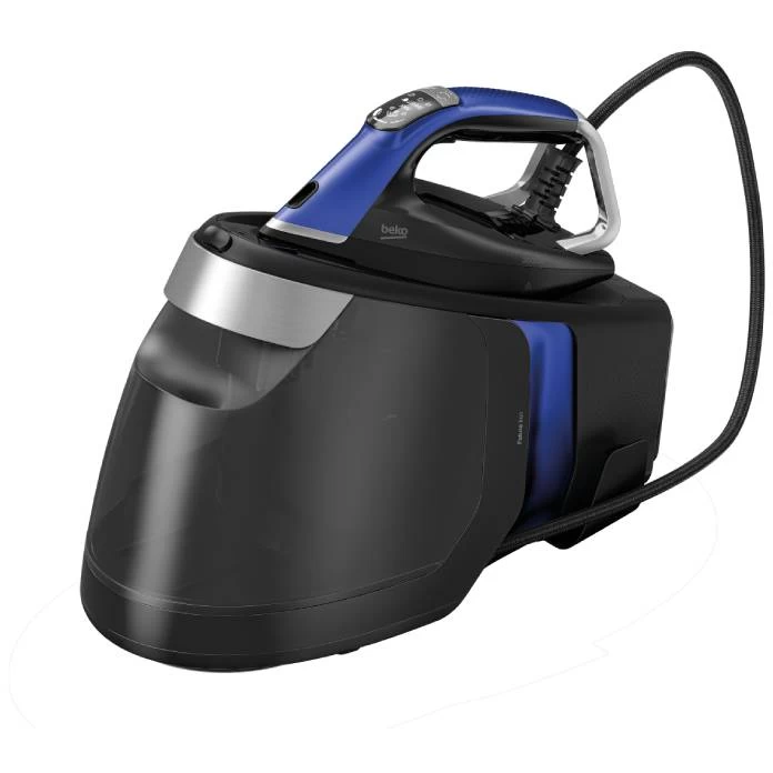 Parna stanica u crno-plavoj boji sa snagom od 3.000W i velikim kapacitetom rezervoara za vodu od 1.800ml omogućava efikasno i brzo peglanje velikih količina veša. Snažan konstantan pritisak pare od 165g/min bez napora uklanja nabore sa svih vrsta tkanina.