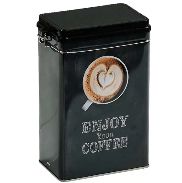 Praktična metalna kutija sa poklopcem omogućava očuvanje svežine kafe ili drugih sastojaka koje čuvate u njoj. Izrađena je od metala, sa printom šoljice kafe na sebi.