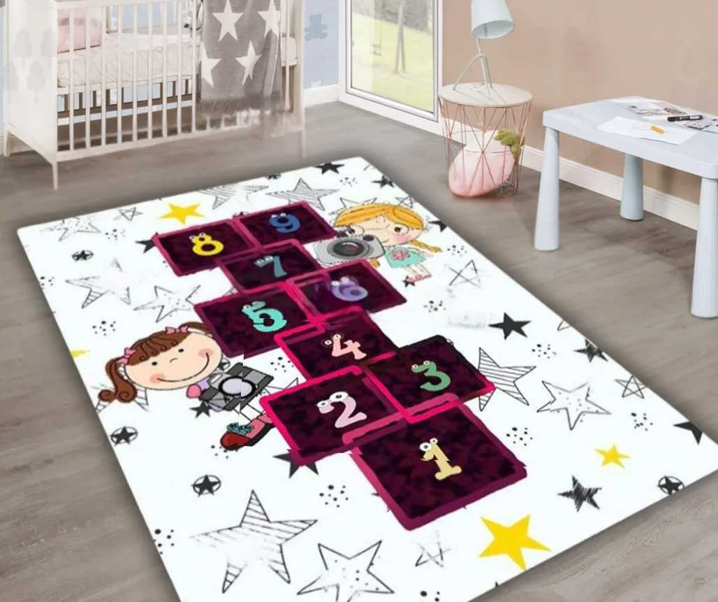 Tepih namenjen za dečiju sobu. Zahvaljujući posebnom motivu daće pečat kako dečijoj mašti tako i ukupnom utisku personalizovanog enterijera. Dimenzije tepiha su 120x180cm. Izrađen je od mekih, netoksičnih materijala.