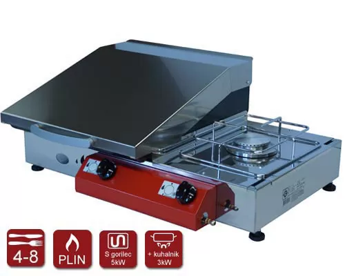 Gorenc plinski roštilj koji je pogodan za unutrašnju i spoljnu upotrebu. Ima ploču za pečenje dimenzija 39x40cm i izdvojeno kuvalo. Spremajte omiljena jela bez dima!